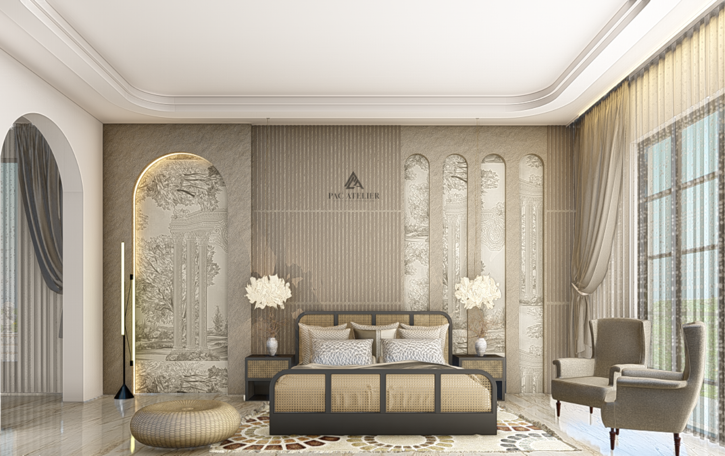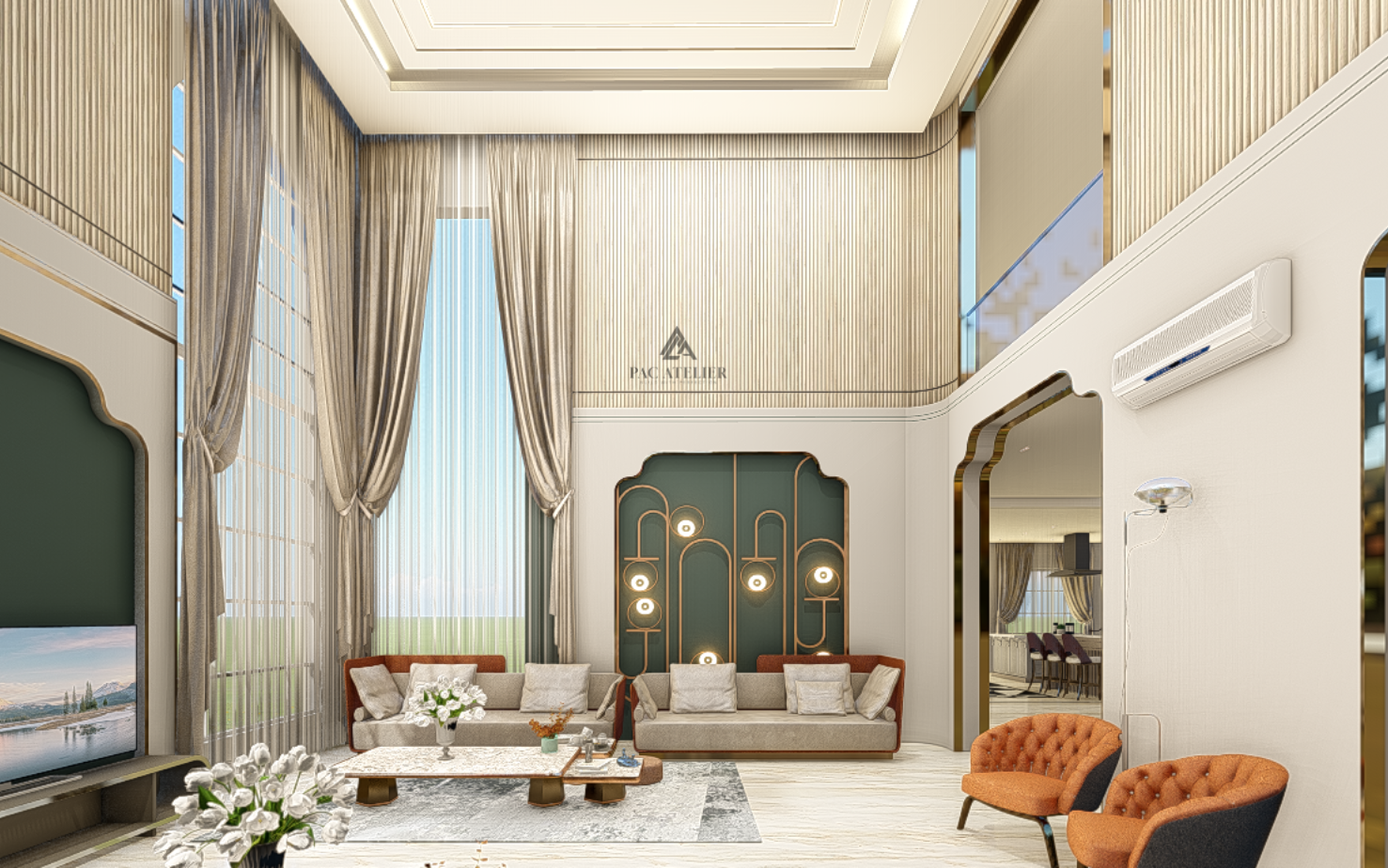 All things considered, this design exhibits a profound awareness of comfort, elegance, and cultural diversity—ideal for a stately estate, an opulent family home, or a situation that demands first-rate hospitality.