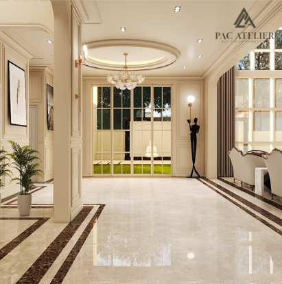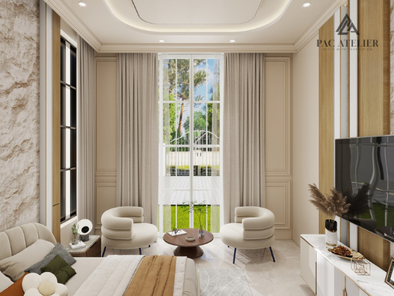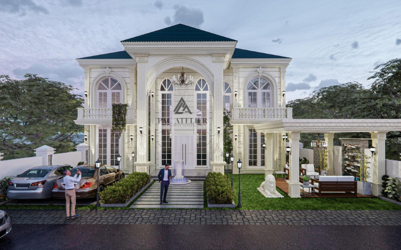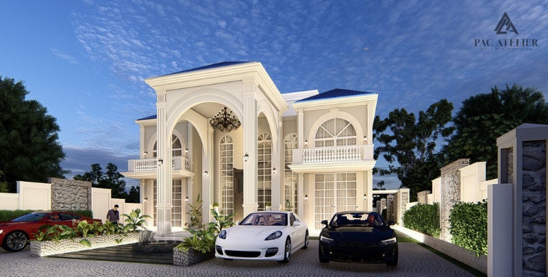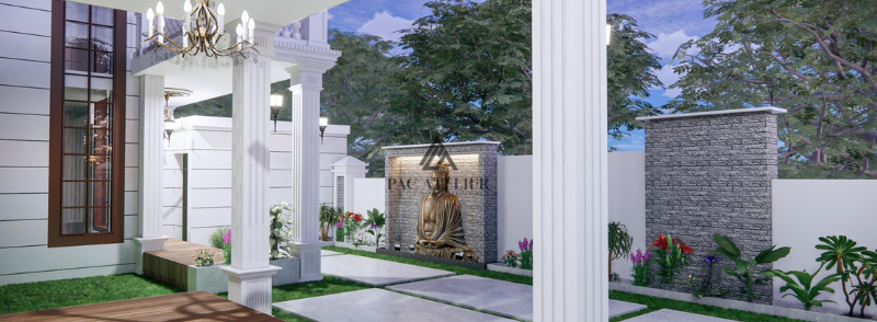 Nestled in the serene and prestigious locality of Green Avenue, Amritsar, Kamboj Villa stands as a timeless example of classical architectural elegance blended with modern luxury. Spanning a total built-up area of 11,782 sq. ft., this residence has been meticulously envisioned by Principal Architect and Designer Ar. Suman Das, with interiors curated to perfection by Interior Designer Subarna Das. The villa’s grand façade, adorned with intricate detailing and arched windows, reflects a regal charm inspired by neoclassical architecture, while the lush green surroundings enhance its serene and sophisticated presence.
