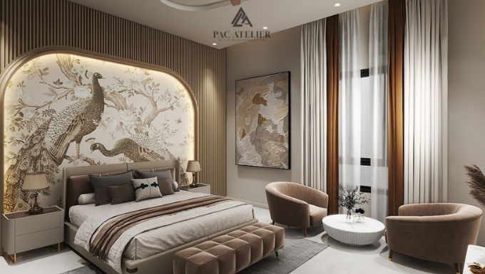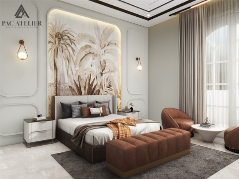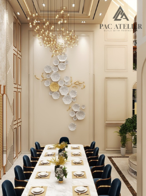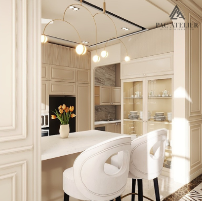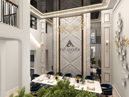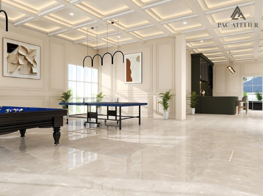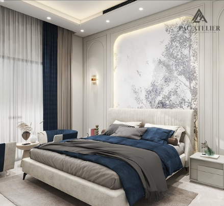 Comprising three luxurious floors, the villa is thoughtfully designed to meet both aesthetic aspirations and functional needs. The interiors showcase a harmonious blend of rich textures, elegant lighting, and refined material palettes that create a sense of opulence throughout. The residence features multiple bedrooms designed for comfort and privacy, a state-of-the-art gymnasium for fitness enthusiasts, an exclusive bar area that exudes sophistication, and a fully equipped kitchen combining modern functionality with timeless style. The bathrooms are adorned with premium marble finishes, giving them a sense of indulgent luxury.
