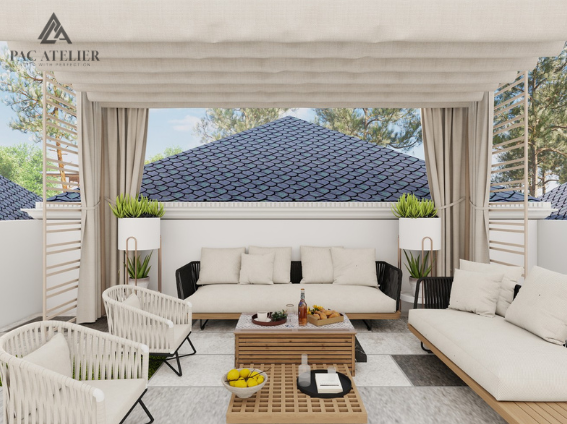 Adding to its grandeur, the villa includes a sparkling swimming pool that serves as a tranquil retreat and a rooftop terrace that offers panoramic views of the surrounding greenery — perfect for hosting gatherings or enjoying peaceful evenings. Every corner of Kamboj Villa reflects a deep understanding of classical proportions, spatial flow, and luxurious detailing, making it not just a home but a statement of architectural excellence.