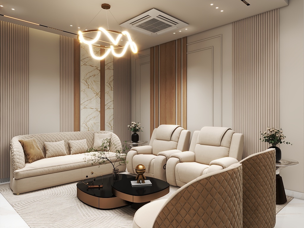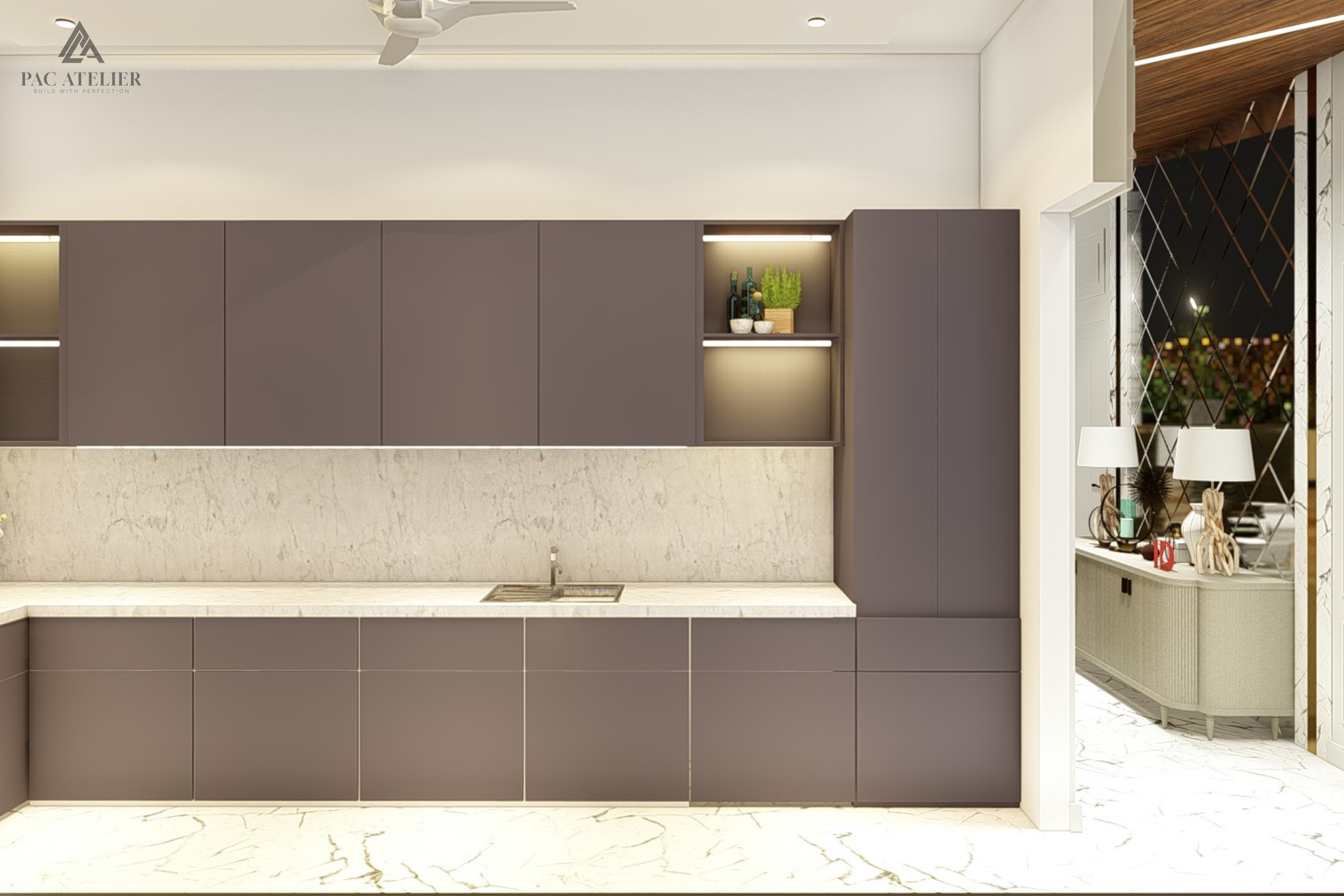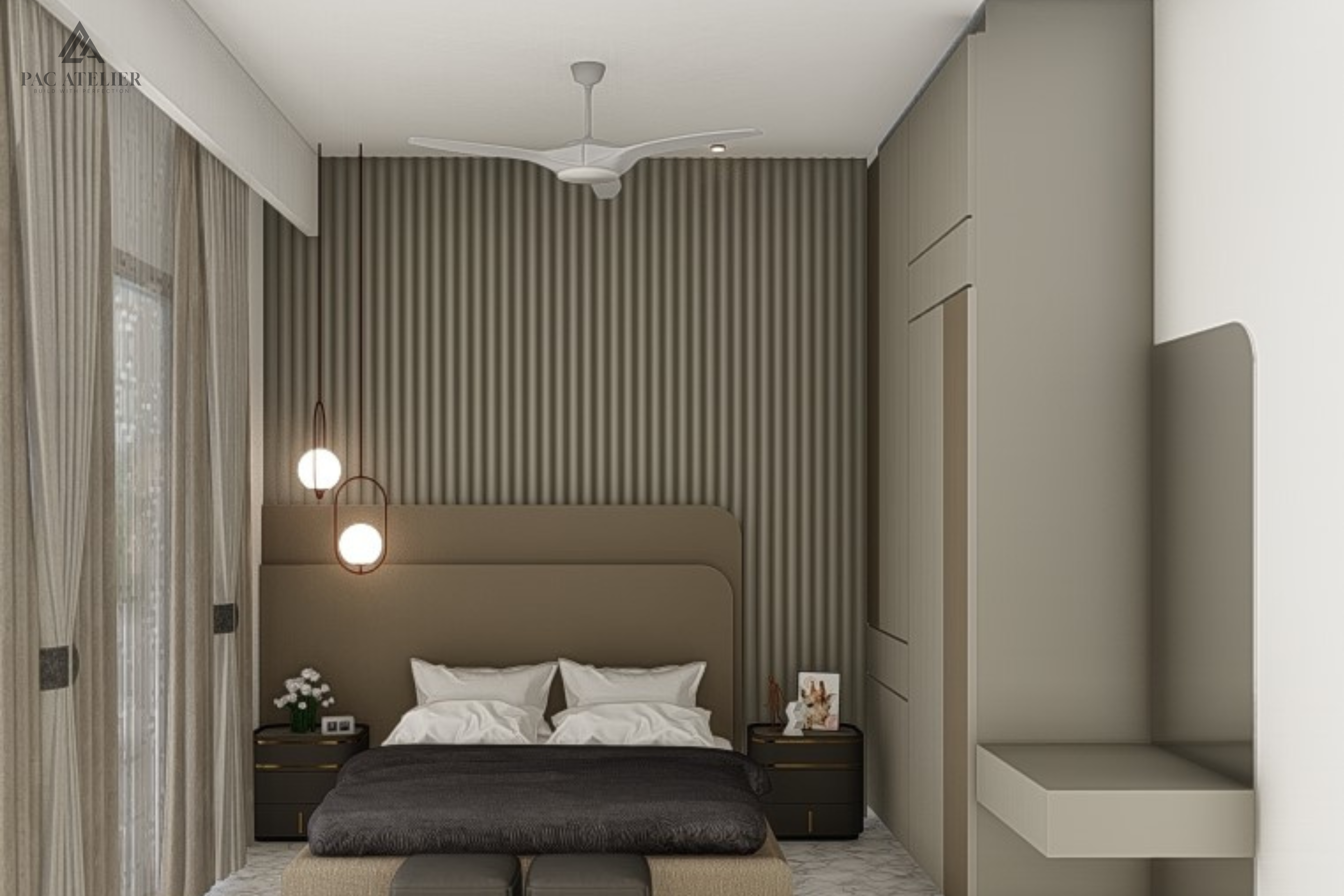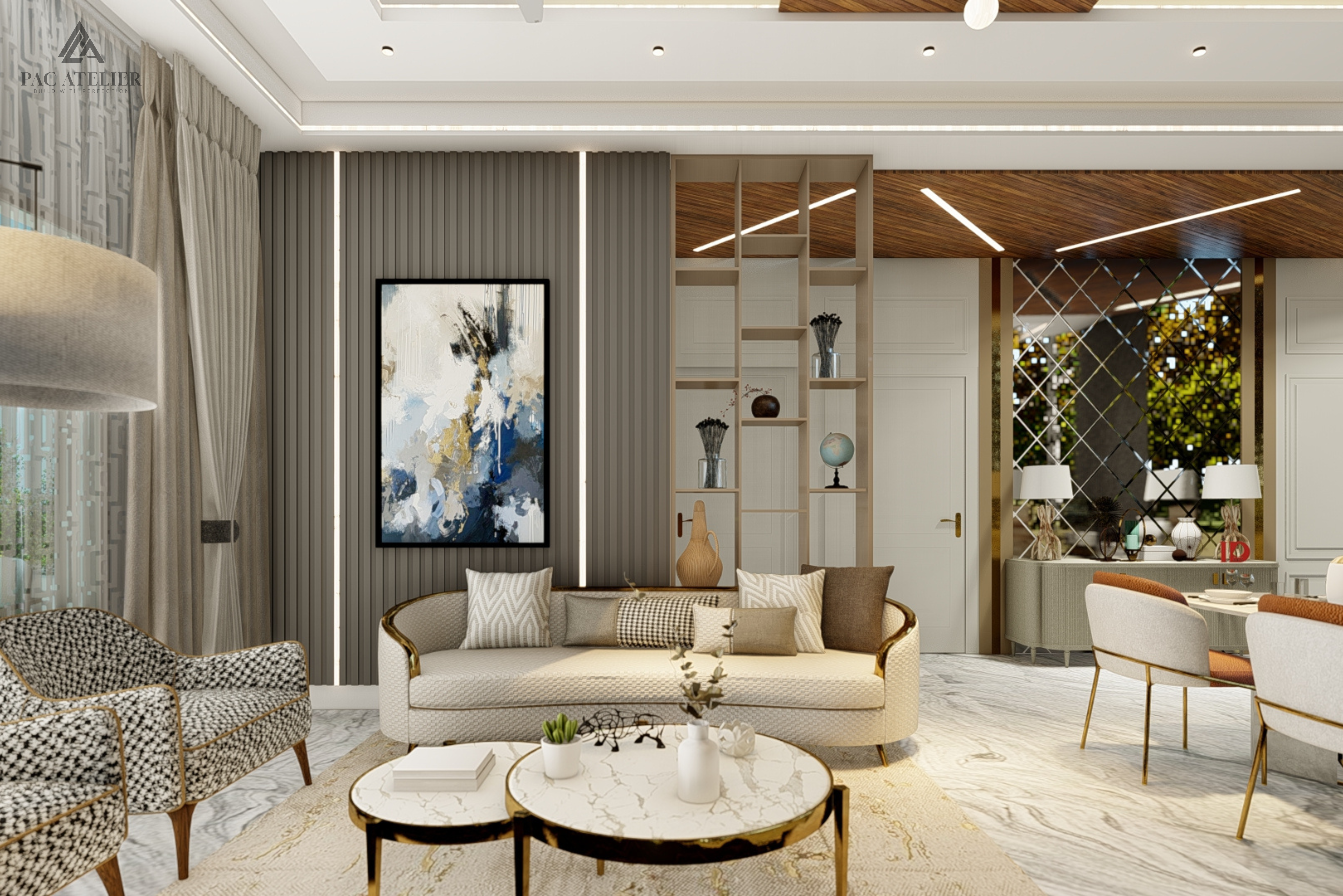 The kitchen has a fantastic look with a nod to a more streamlined look for its interior. You can achieve this with matte-finished cabinetry in natural shades accompanied by a backsplash or countertops crafted from marble. You can add more functionality by including display niches while still focusing on a seamless experience with efficient spaces for maximum movement. Considerably elegant and refined is the living area with the TV unit space. Here again, a nice use of texture in choosing a combination of paneling on the walls and marble to place on top of the TV unit has resulted in a stylish look without being too dramatic in nature. Finally, a space that very well reflects PAC Atelier’s vision and notion of a home—a space combining sleek contemporary looks with material harmony and meticulous detail to create a home that is both stylishly elegant and invitingly livable.