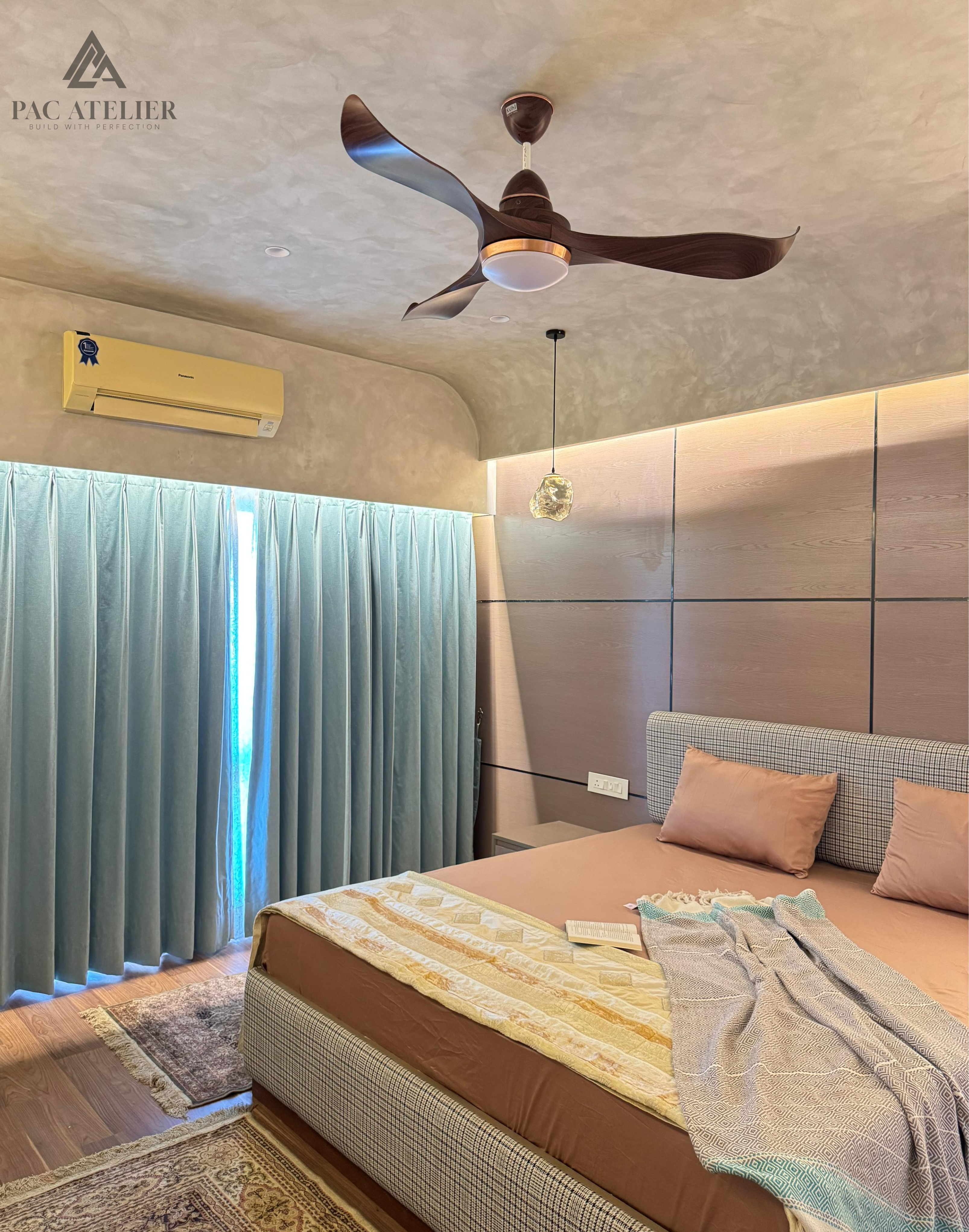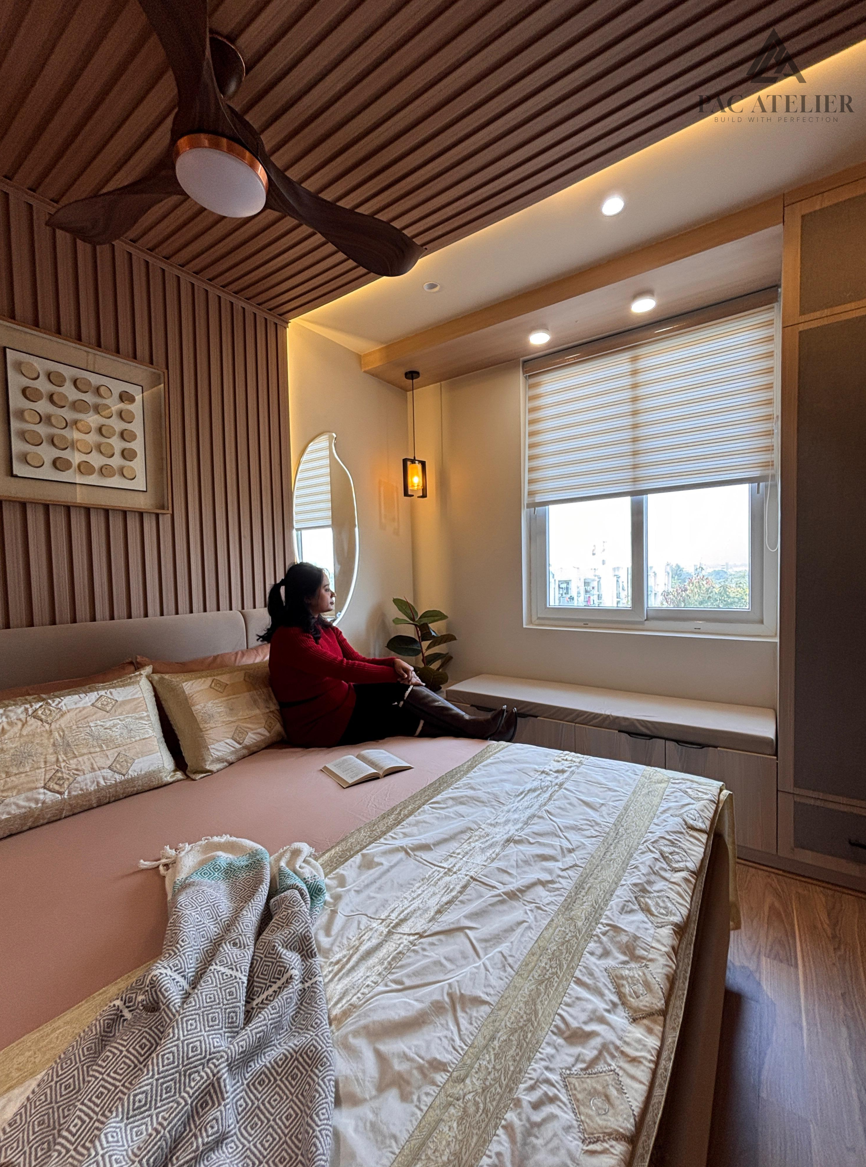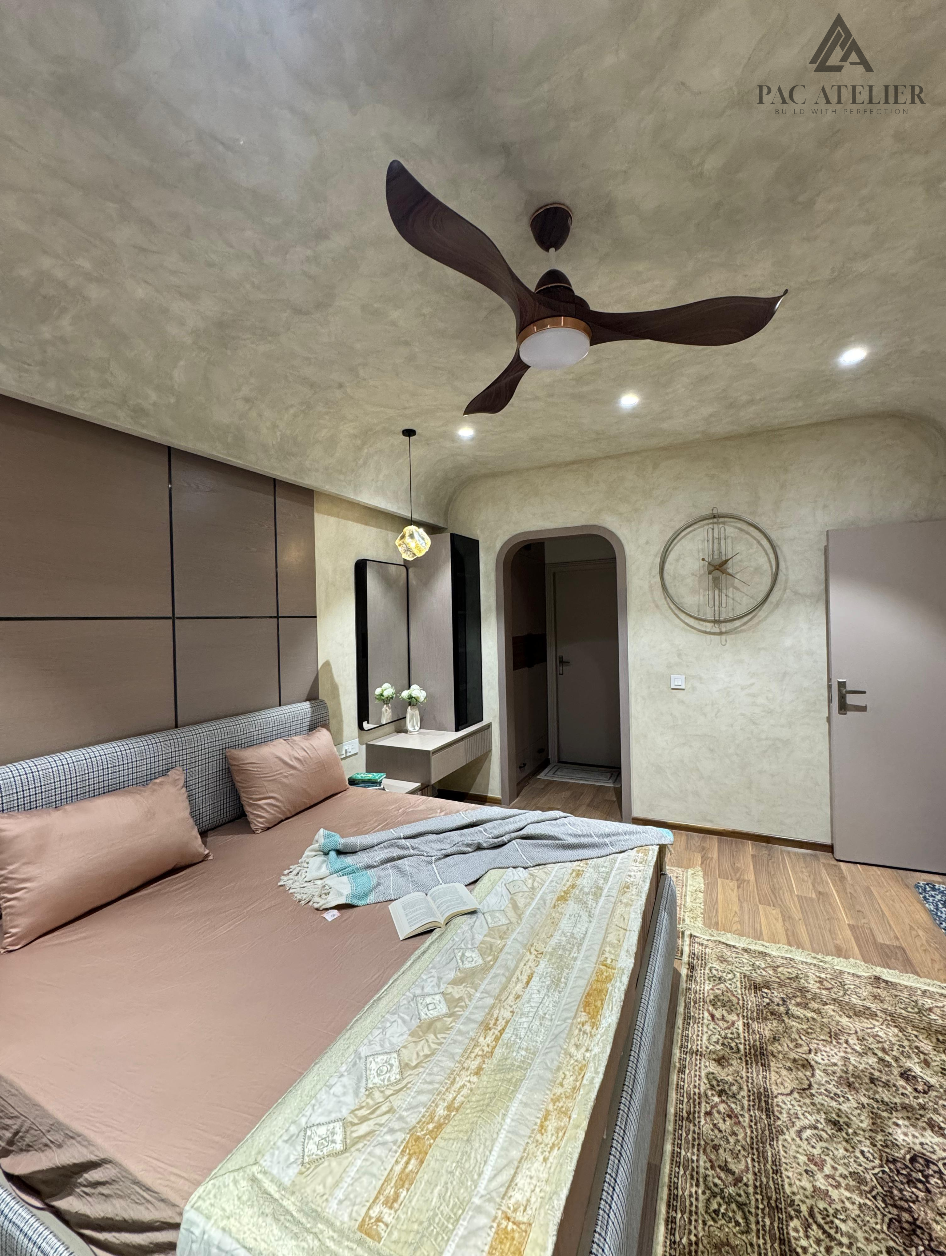 In the bedrooms, pronounced ceilings with texture, accent walls with wood panels, complement warm wood floors, as well as soft upholsteries. Lighting is soft and indirect, accentuating textures as opposed to overpowering them. In the living areas, the same idea of a calm yet inviting environment is realized through a combination of earth-colored walls, statement furniture pieces, and soft cove lighting. Natural fabrics, house plants, as well as thoughtfully placed artwork on walls, feature to give the spaces their unique touch without in any way disturbing their calmness.