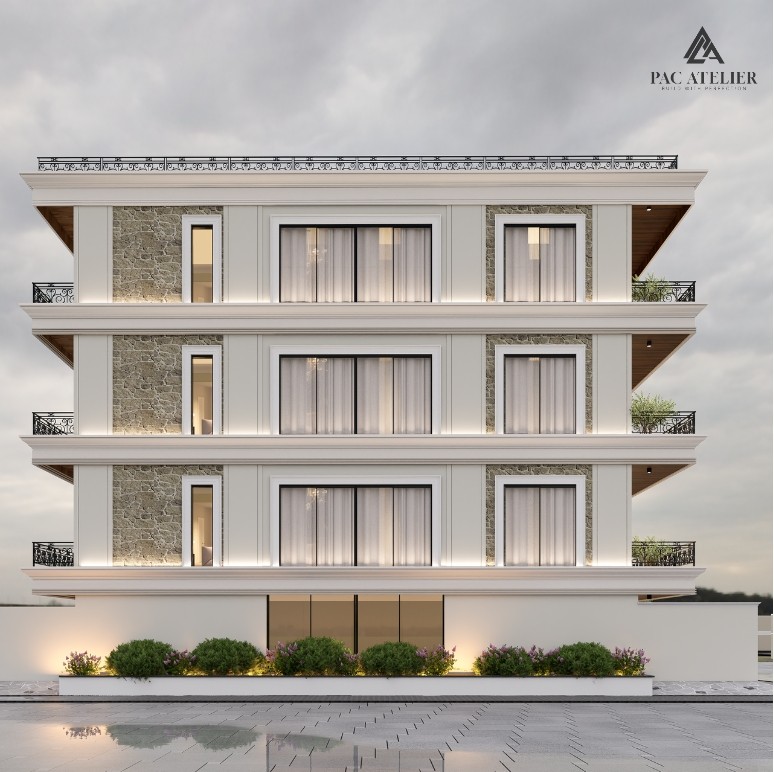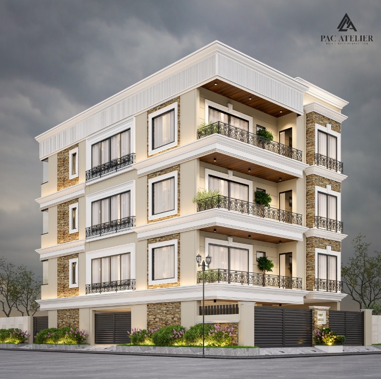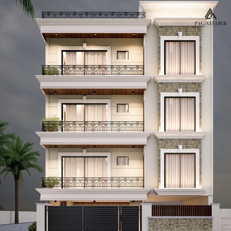 Located in the prestigious neighborhood of Sector 6, Panchkula, The Stonecrest Residence is a landmark residential project spread across 8,800 sq. ft., designed to reflect modern elegance with timeless architectural detailing. The exterior theme is defined by a refined blend of textured stone cladding and smooth neutral finishes, creating a balanced and sophisticated façade.